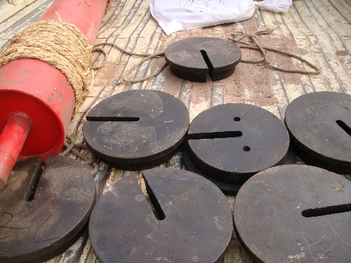 掛碼校驗(yàn)裝置是將標(biāo)準(zhǔn)重量的砝碼懸掛于皮帶秤托輥或稱(chēng)重橋架之上,模擬物料運(yùn)行時(shí)的重量數(shù)據(jù)。掛碼校驗(yàn)成本低,裝置方便,但如果皮帶秤結(jié)構(gòu)抗張力變化能力差,精度相對(duì)較低,適用于空間較小、對(duì)精度要求不是很高的作業(yè)場(chǎng)合。